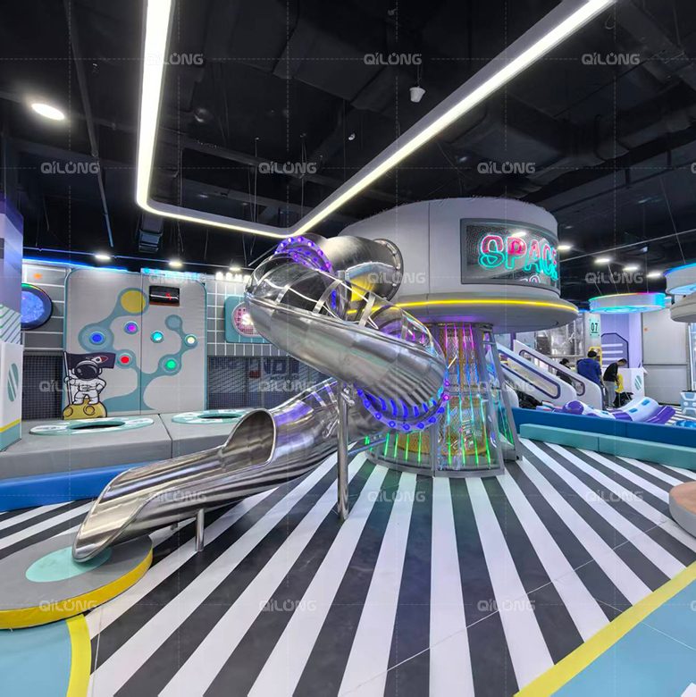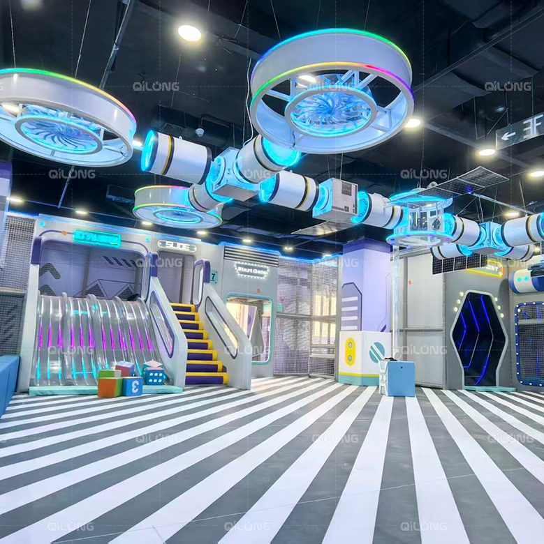 تتميز هذه الساحة الداخلية النابضة بالحياة بتصميم مستقبلي مستوحى من الفضاء بألوان جريئة. وتضمّ حوض كرات ضخمًا، ومنزلقات حلزونية، ودوامة دوارة.تُقدّم هذه الملاعب الداخلية تجربةً مميزةً ومستقبليةً، تُتيح فرصةً لإطلاق العنان لإبداع الأطفال. لا يقتصر اهتمام الآباء على منح أطفالهم وقتًا ممتعًا فحسب، بل يتعداه إلى التقاط لحظاتٍ لا تُنسى وسط هذه الهياكل الآسرة ذات الطابع الفضائي.